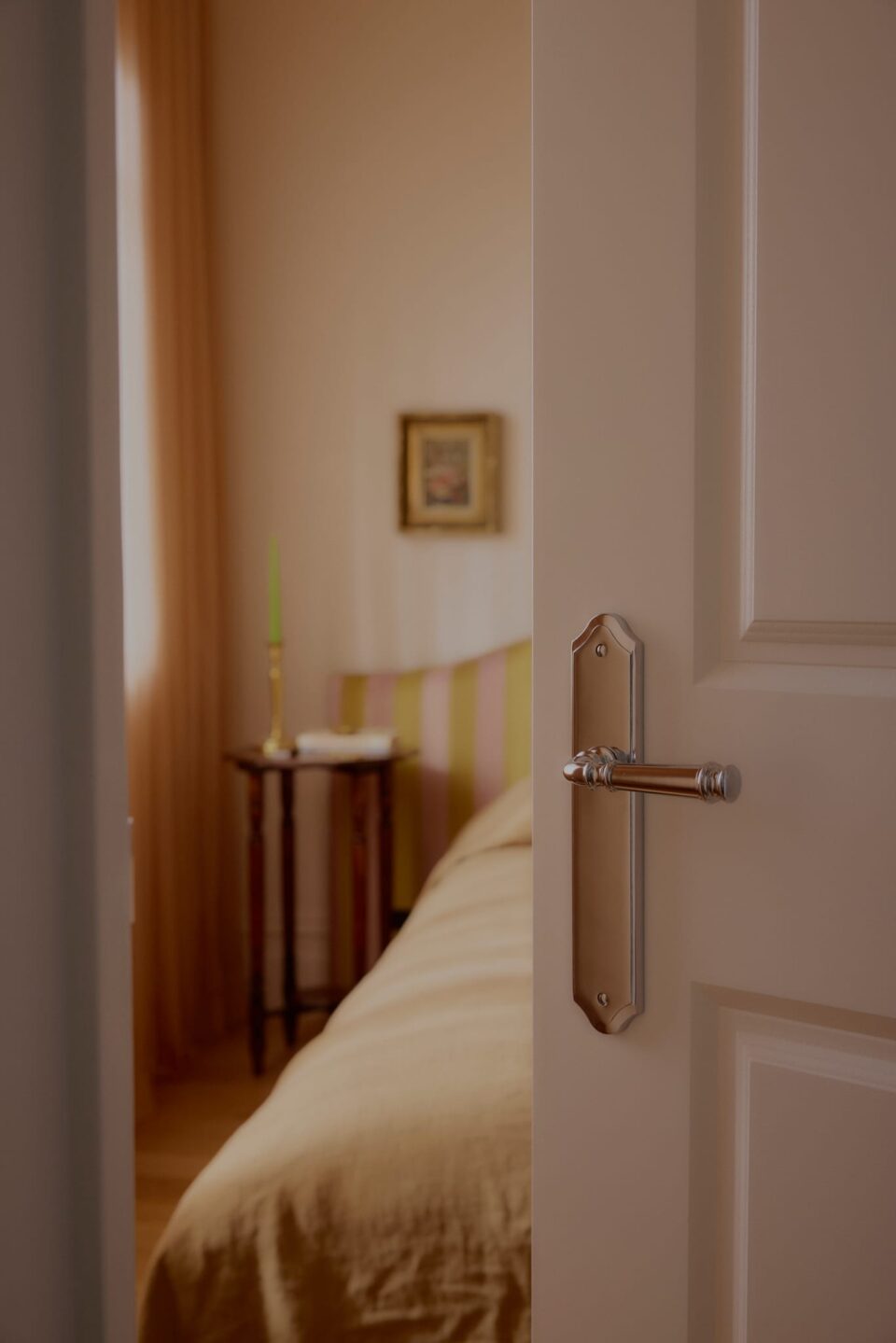 One element the couple aligned on was using Iver hardware. “In our journey to transform the home back into something of its original state, the Verona Lever with Shouldered Backplate was the perfect choice to elevate the feel of the interior,” they say. “We chose to go with polished chrome as a nod to a more contemporary feel.” This finish echoes other elements the couple wanted to highlight. “The chrome works well with our furniture and the direction in which we’re decorating,” explain Cate and Dylan. “It speaks to our USM Haller sideboard and a few other chrome pieces that we have brought over from our last home.”