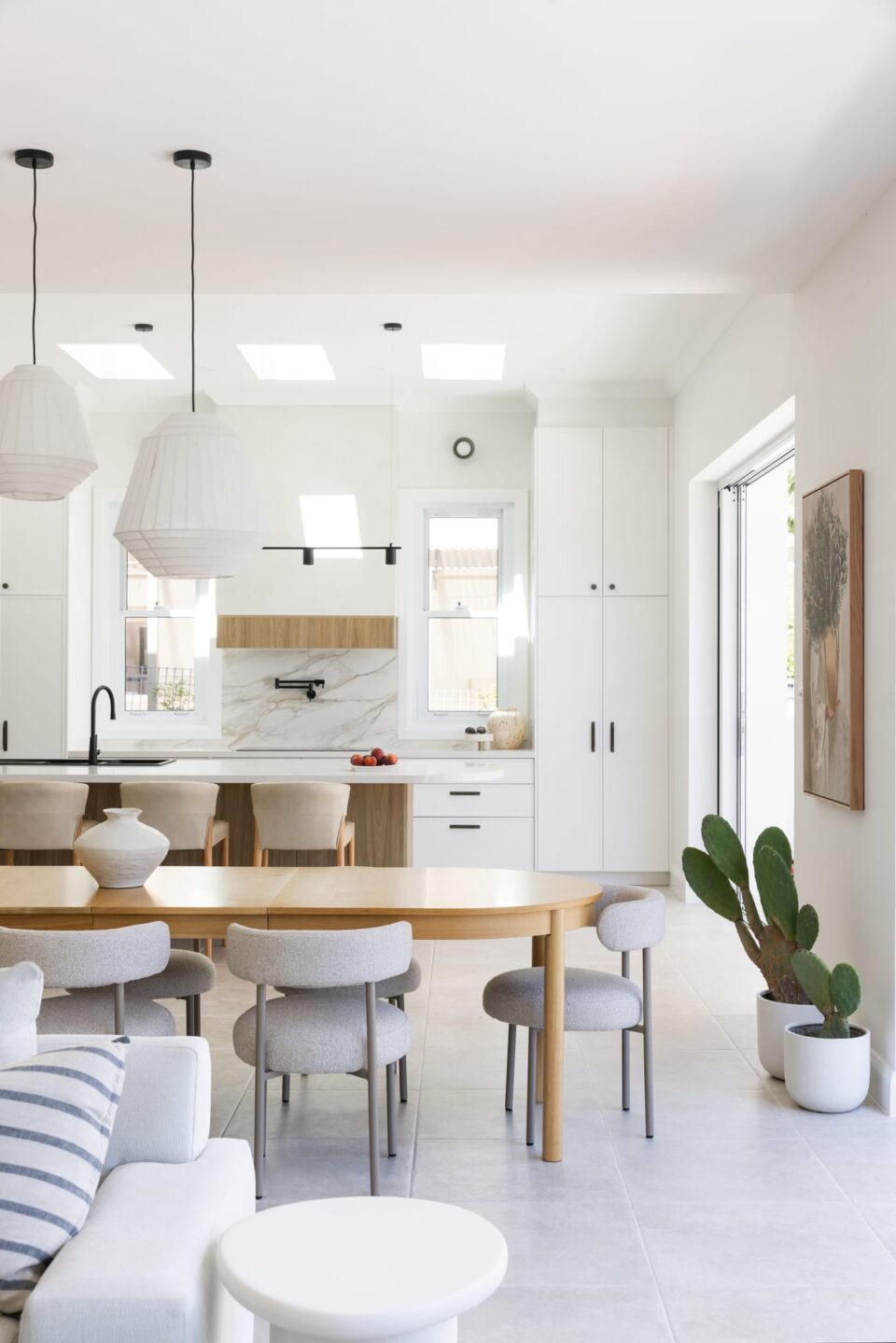 She bought the property in 2022, demolished it in December 2023, and finished its reconstruction in April 2025, when the family moved back in. “We purchased the property mid-2022 and after living in it for a few months, started the design and planning process for what we wanted to create,” she states. “Being both the designer and the homeowner meant I could create something very customised to the way we live, and the layout reflects this. The home is generous in scale with strong connections between indoor and outdoor spaces, an emphasis on natural light and airflow, and a floorplan designed to support family life over time. Designing every inch of the home inside and out made the building journey incredibly personal.”